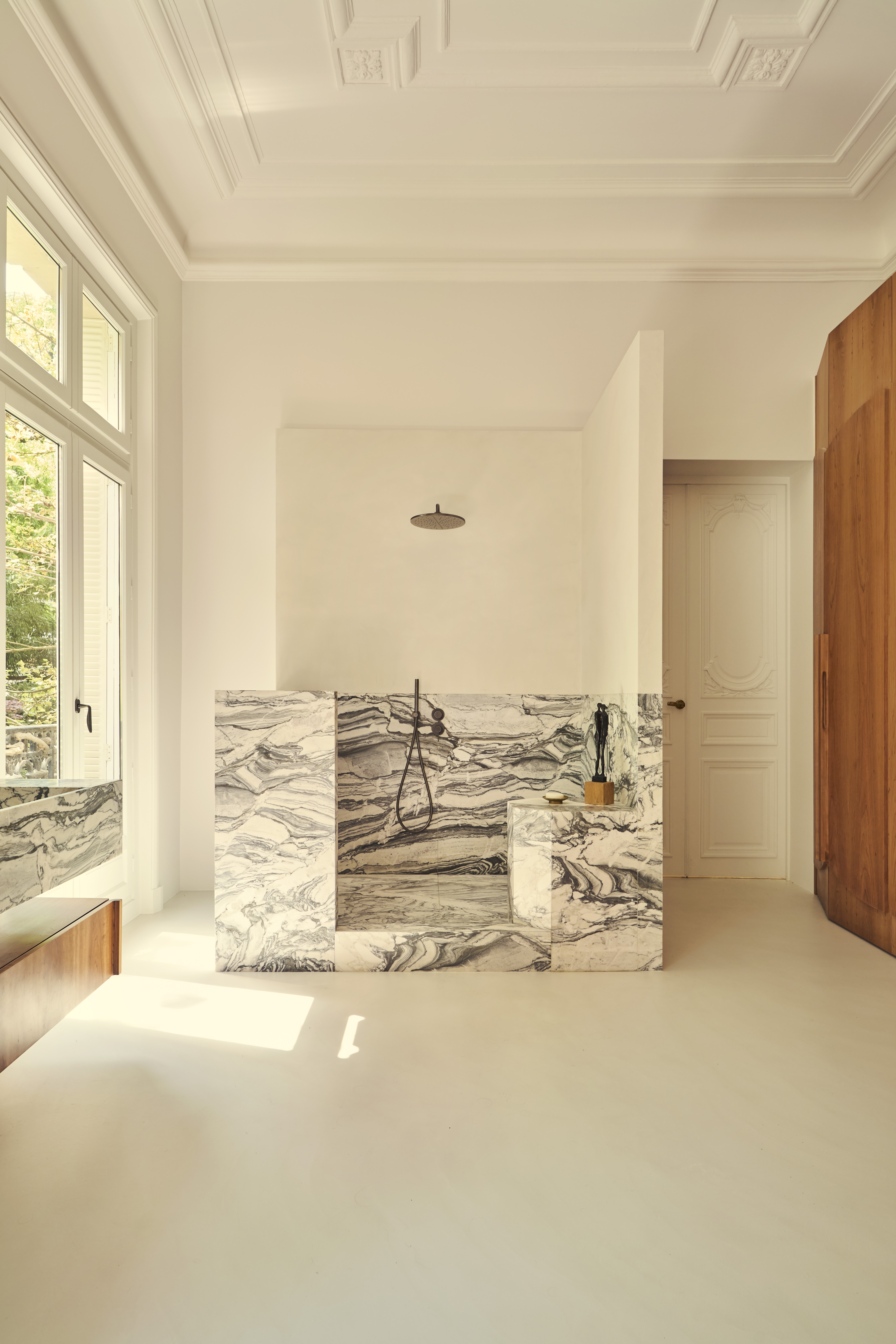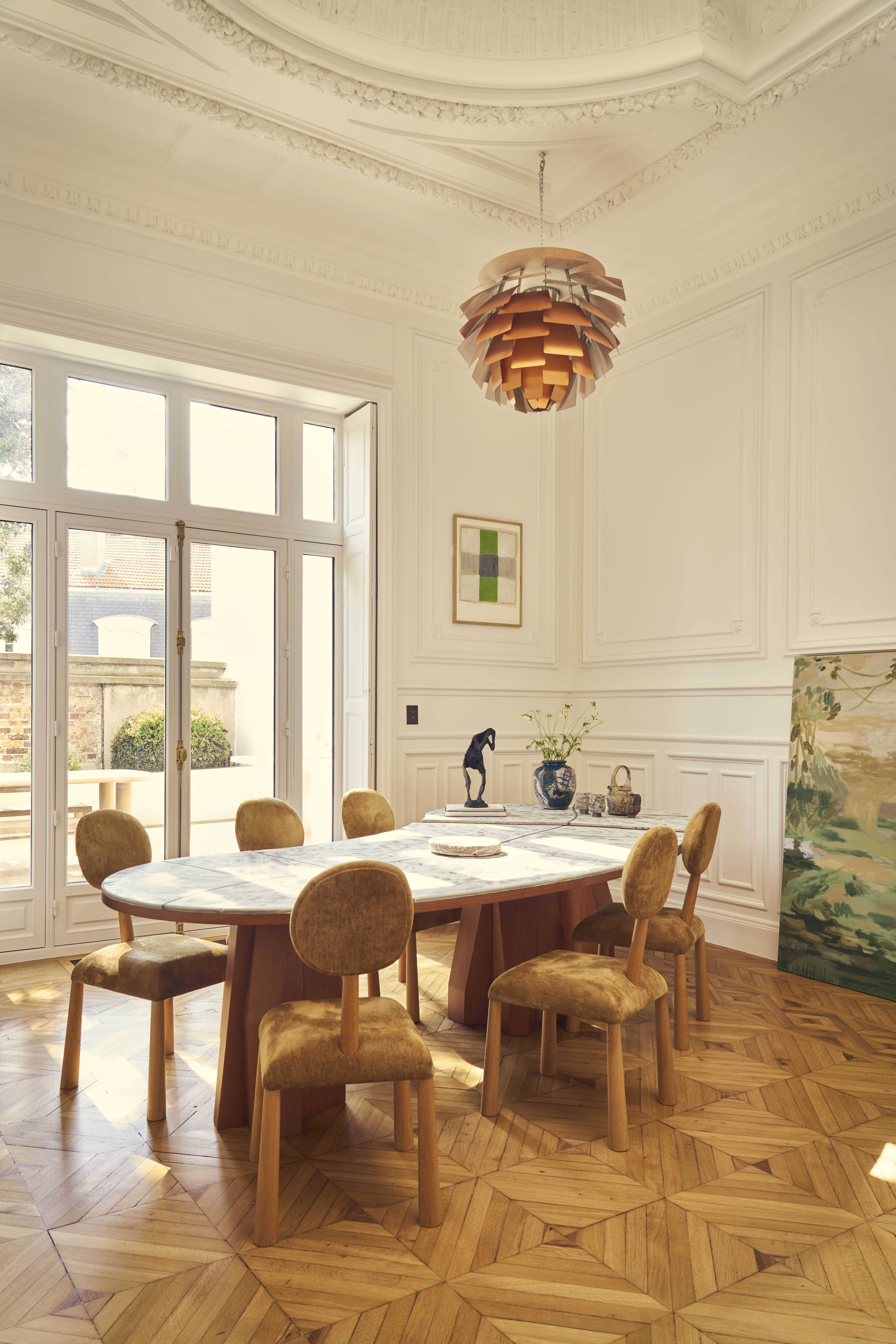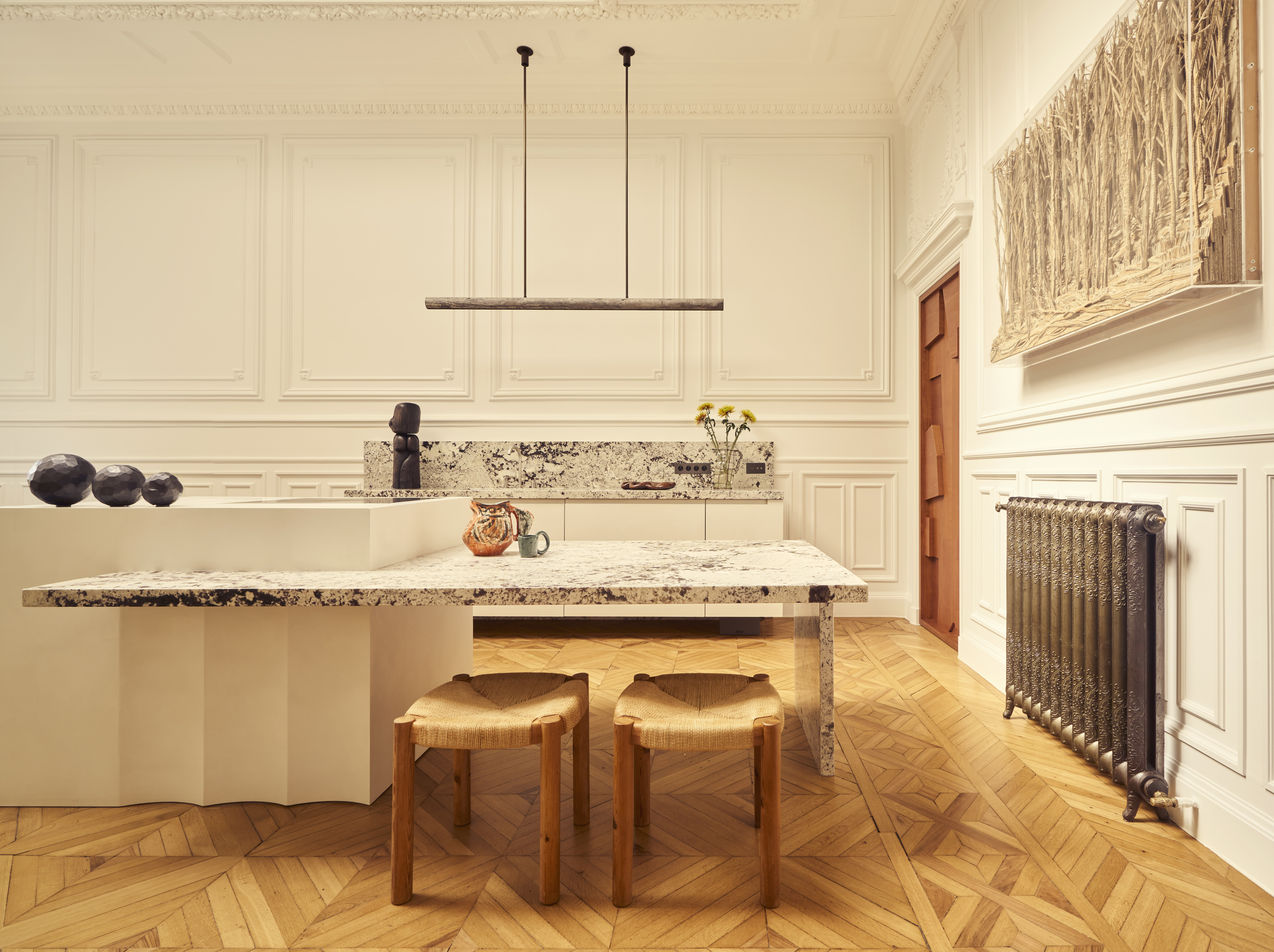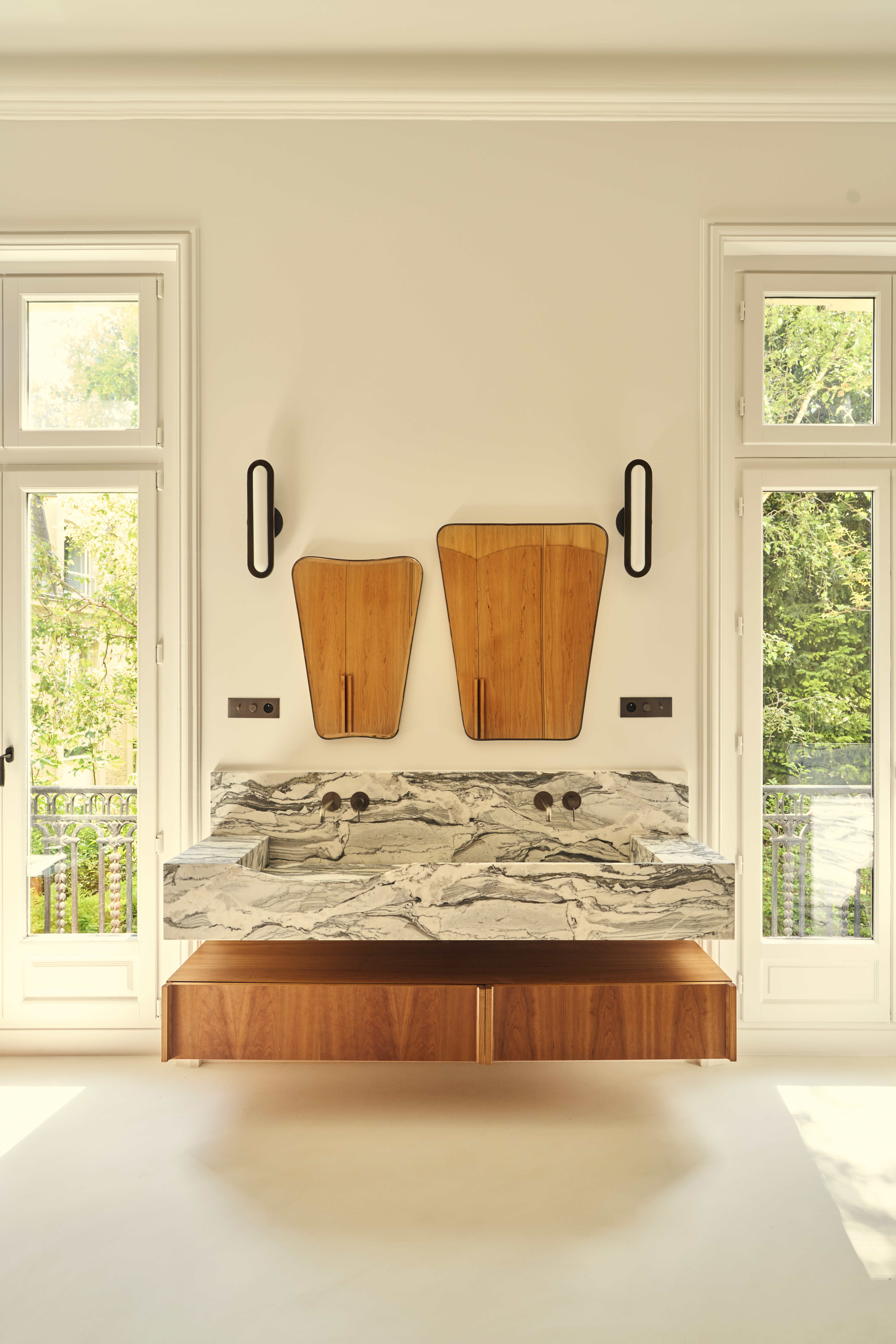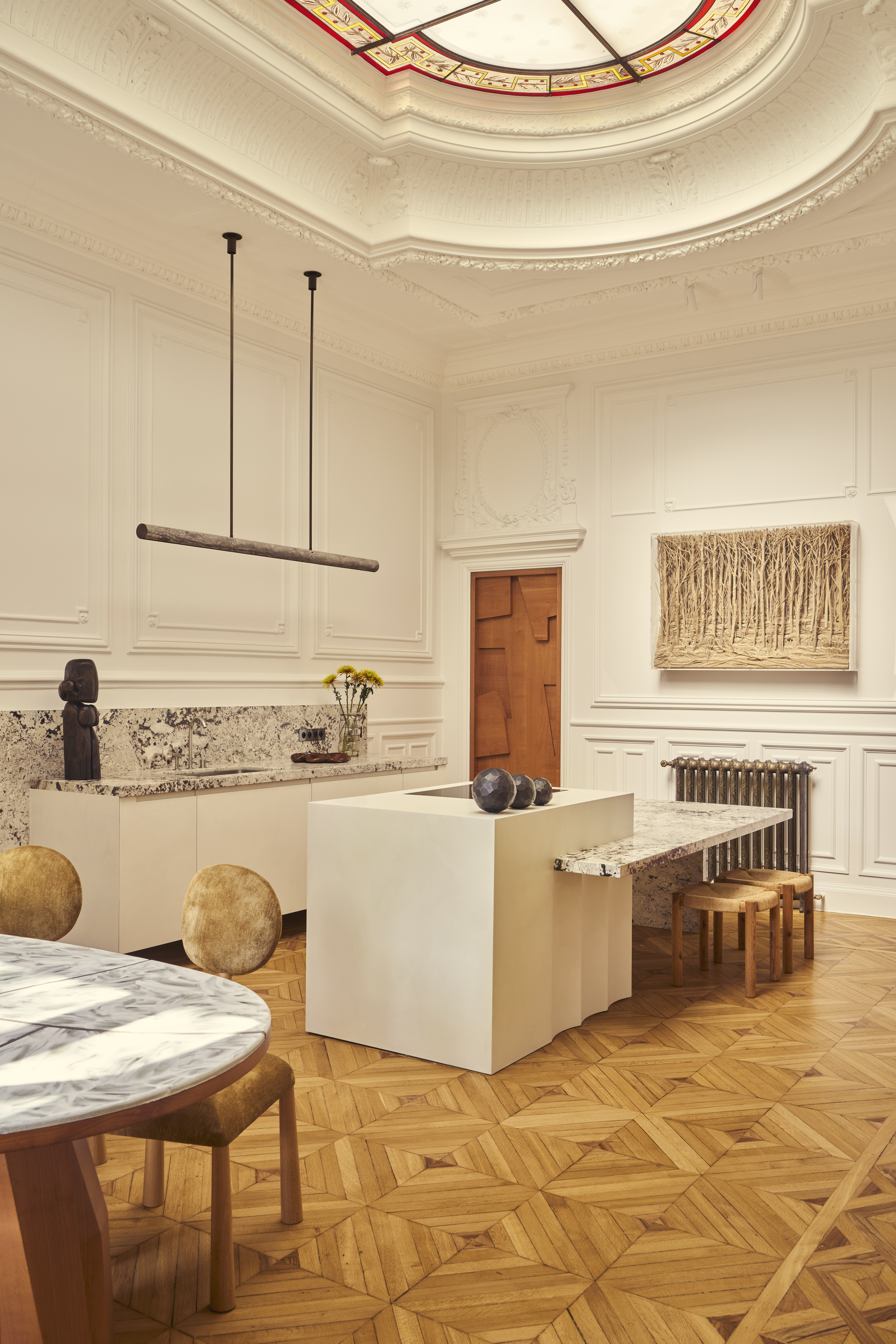 Dans un hôtel particulier haussmannien, cet appartement est réinventé autour d’un jardin secret. L’intervention architecturale établit un dialogue entre héritage ornemental et écriture contemporaine, où les matières naturelles et artisanales redonnent un nouveau souffle à l’espace. Pensé comme un lieu de vie et d’exposition, il devient un écrin épuré pour les œuvres et les objets, offrant une expérience intime et apaisée.